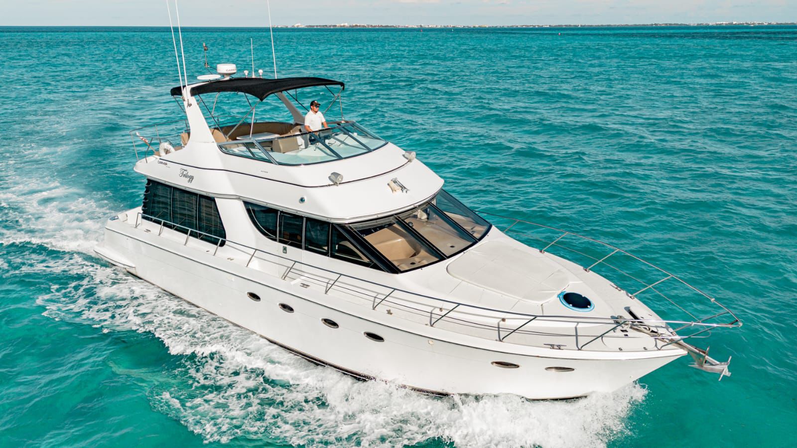 Whether you’re looking to celebrate a special occasion, entertain business clients, or simply enjoy a relaxing getaway, our 55ft Carver Yacht with flybridge has everything you need to make your experience truly unforgettable.
