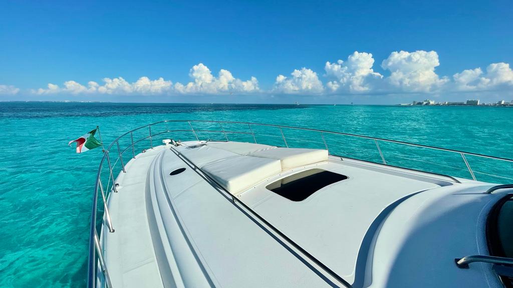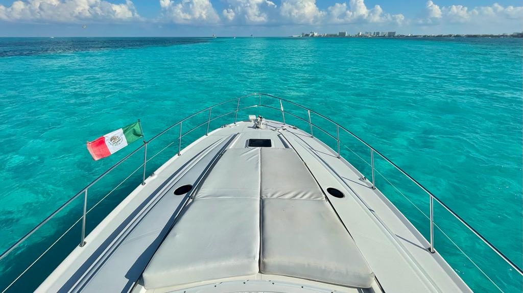 You have a large roomy open cockpit and sundeck to enjoy the Mexican Caribbean.